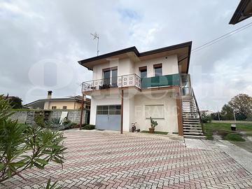 LEGNARO, nella prima periferia tranquilla ma comoda, proponiamo una casa singola di recentissima ristrutturazione, che offre una soluzione abitativa unica e flessibile. Permette infatti di utilizzarla come due unità abitative completamente indipendenti, ideale per famiglie (genitori e figli) che desiderano vivere vicino o per investitori che cercano un'altra rendita da locazione. Gli spazi interni sono suddivisi al piano terra (con ingresso indipendente) da un'accogliente unità composta da salone, camera matrimoniale, disimpegno, bagno ed un'eventuale stanza aggiuntiva; al piano primo (con accesso tramite scala esterna) dall'alloggio principale con un luminoso soggiorno-cucina openspace, da cui si accede ad un ampio poggiolo, e la zona notte con due camere, disimpegno e bagno. La proprietà è valorizzata da un giardino privato di circa 600mq, luogo perfetto per momenti di relax.