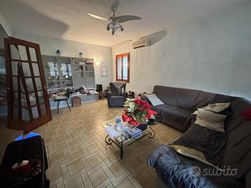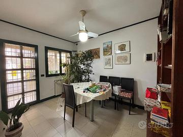 Al piano terra l'ingresso conduce ad un salotto spazioso e ad una sala da pranzo con annesso cucinino, due ripostigli e locale lavanderia ed ulteriori tre ampie stanze.