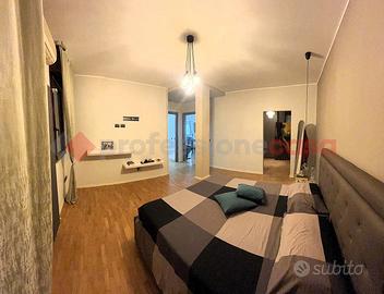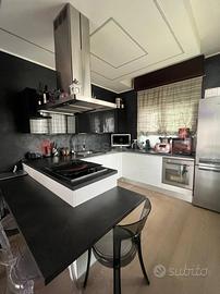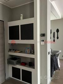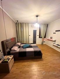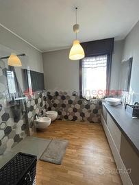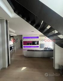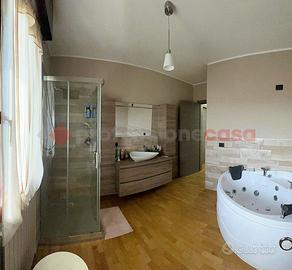 La villa è composta dal soggiorno con cucina a vista di circa 70 mq, dal bagno e dalla scala di design elicoidale che accompagna alla zona notte al primo piano di circa 100 mq dove troviamo tre camere matrimoniali, di cui una con cabina armadio, due bagni e un terrazzo che percorre tutti e quattro i lati della villa. Al piano seminterrato è presente la taverna di circa 55 mq riscaldata con stufa idro pellet che alimenta anche i caloriferi a supporto della caldaia e, a seguire, troviamo la cantina, il box auto, oltre al giardino di circa 170 mq.