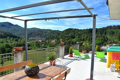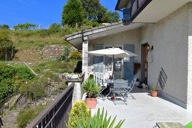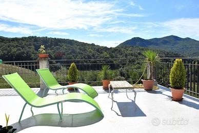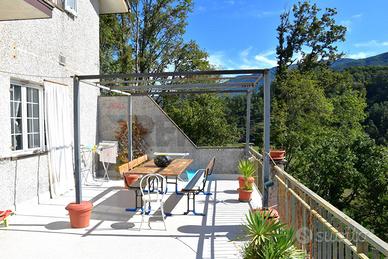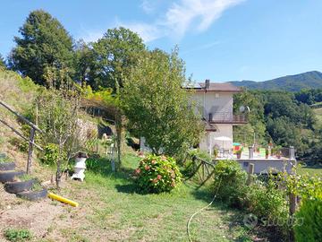 Completa la proprietà giardino-terreno intorno alla casa di 1.300 mq in parte attrezzato con gazebo , altalena , piscina gonfiabile, in parte a terrazzamenti e il resto bosco.
