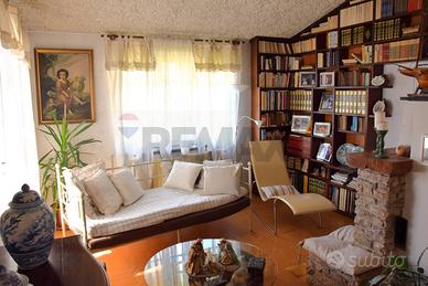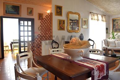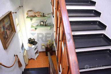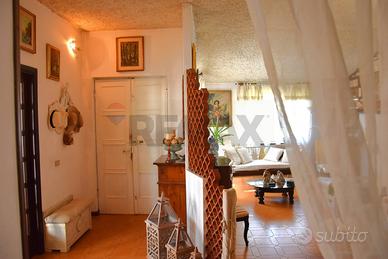 Immenso terrazzo, ingresso, salone, zona pranzo e cucina, ripostiglio, bagno. Al 1° piano: bagno e 3 camere da letto, una con terrazzo; studio.