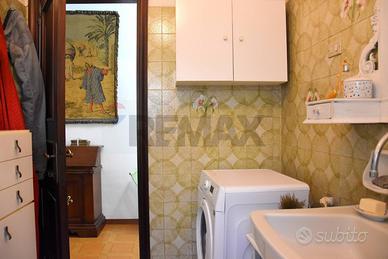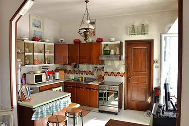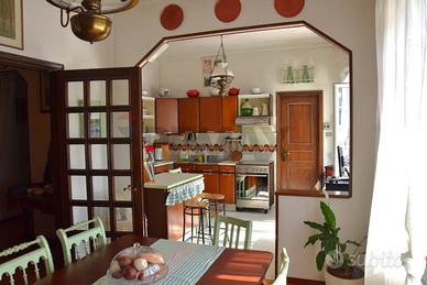 Un'ampia porta a vetri divide la zona pranzo che a sua volta è separata da un arco dalla cucina semi-abitabile con angolo colazione e portafinestra per la terrazza. Presente anche una comoda dispensa.