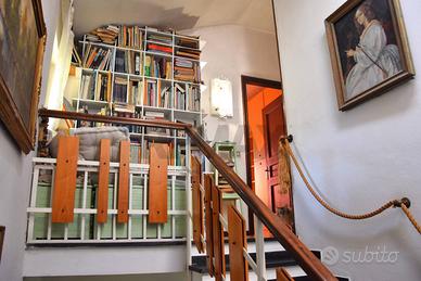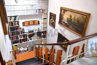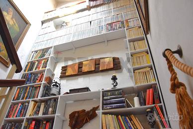 Qui, sulla sinistra: la bella e arredata scala con libreria fino al tetto per il piano notte con sottoscala sfruttabile!