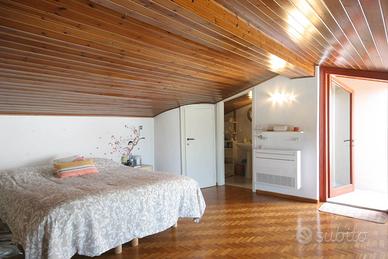 Sempre attraverso una scala interna si arriva al piano primo, dove c'è una mansarda utilizzabile come terza camera con un ulteriore bagno ed un grande terrazzo abitabile con splendida vista lago.