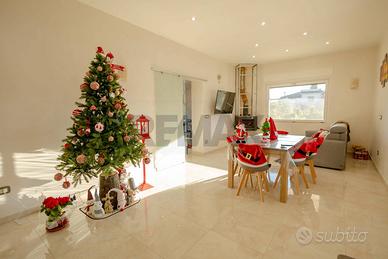 Particolare attenzione è stata dedicata alle finiture e alla dotazione tecnologica della casa: infissi in legno/alluminio doppio vetro, zanzariere, tapparelle elettriche, sistema di videosorveglianza e allarme, oltre a un moderno impianto di riscaldamento a pavimento alimentato da pompa di calore. A completare lefficienza energetica dellabitazione vi è un impianto fotovoltaico di 4.2KW già installato e la predisposizione per lallaccio allacquedotto.