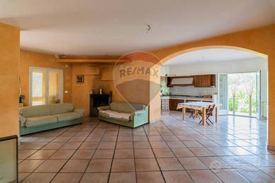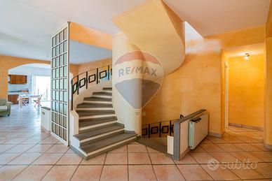Accediamo al piano terra direttamente sul salone doppio con camino e cucina abitabile annessa, a seguire tre camere da letto matrimoniali e un bagno; al piano di sopra altre due camere da letto matrimoniali entrambe con bagno in camera e due camerette servite da un altro bagno.