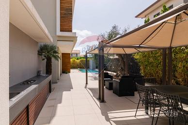 Le ampie vetrate danno i giusti apporti solari per riscaldare nella stagione invernale e si aprono completamente verso la piscina a sfioro con cascata, dove oltre all'angolo aperitivo si trova una comoda vasca per i bambini oltre che per gli adulti;