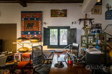 Il primo piano è raggiungibile tramite una suggestiva scala a vista in ferro battuto e maioliche di pregio. Qui si sviluppa la zona notte composta da due camere da letto, un bagno e un comodo studio, ideale anche come area smart working.