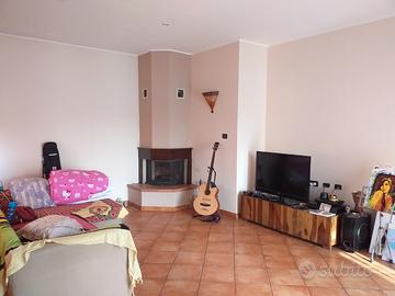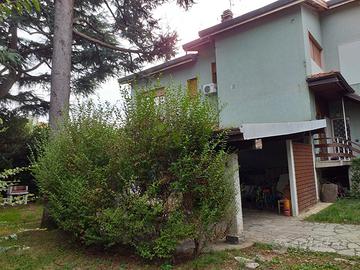 Vendo villa singola in zona villaggio residenziale, attualmente divisa in due appartamenti indipendenti,uno al piano rialzato di 180 mq. ,l'altro al primo piano di 160mq.in piu' taverna di 85mq.,box auto e ampio giardino con 3 pini secolari.Pannelli solari.Camino e aria condizionata su ambedue i piani.