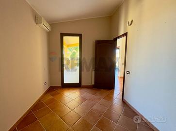La disposizione degli spazi è razionale e funzionale, con un'ampia zona giorno al piano terra e la zona notte al piano superiore. L'ingresso principale al piano terra si apre su un luminoso salone doppio, ampio e accogliente, che si affaccia sul giardino privato con prati e palme ma anche ampia possibilità di parcheggio.