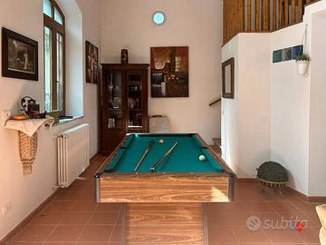 L'immobile è disposto su 2 piani ed è composto da: al PT ingresso, ampio soggiorno con camino, disimpegno, cucina e bagno con doccia, idromassaggio e termo-arredo, al 1° Piano ci sono disimpegno, 2 camere matrimoniali, 2 camere doppie e 2 bagni con doccia e termo-arredo. In 2 delle camere sono stati realizzati due soppalchi con scale in legno.