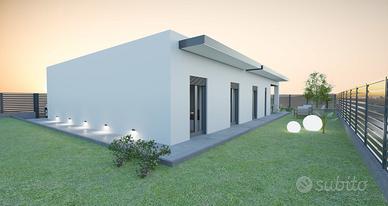 Proponiamo in vendita villa unifamiliare, libera su quattro lati, di prossima realizzazione. Il progetto prevede la disposizione su un unico piano ed è composta da zona giorno living con cucina open-space, tre camere da letto, due bagni, terrazzo e porticato. La proprietà si completa con box auto doppio ed il giardino esclusivo. La costruzione verrà realizzata con i massimi sistemi all'avanguardia ed il progetto è modificabile in base alle proprie esigenze. Tutte le finiture interne ed esterne possono essere selezionate autonomamente dalla parte acquirente. La villa è realizzabile in 10 mesi.