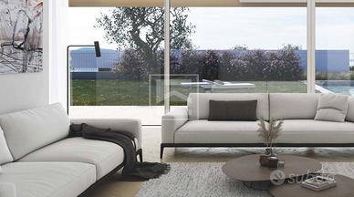 La soluzione è composta da un ampio soggiorno con sala da pranzo e cucina, dal soggiorno si accede tramite una porta scorrevole direttamente al portico di circa 85 m².