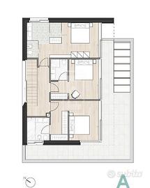 Al piano primo troviamo tre camere da letto, tre bagni e un ampio terrazzo di circa 35 m².