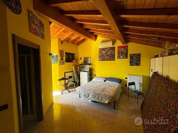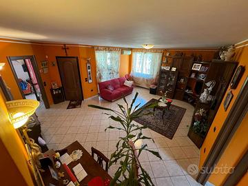 L 'abitazione e' composta da ingresso con porticato veranda, salone, grande cucina abitabile, due camere letto, bagno con doccia e bagno con vasca idromassaggio al piano rialzato, ampia camera letto con bagno e terrazzino al piano secondo. Piano cantinato composto da grande taverna con angolo cucina e forno, vari locali e servizio.