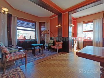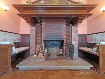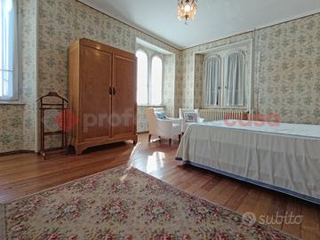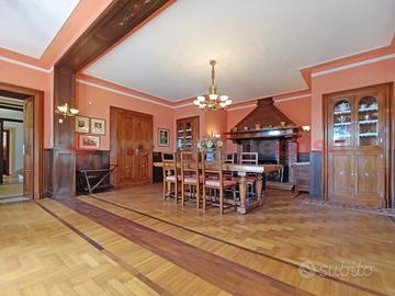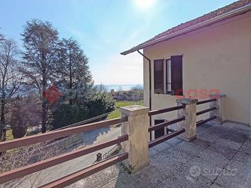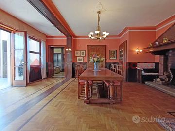 Bellissima villa di inizio '900, immersa in parco di circa 9'000 mq, con stupenda vista panoramica sul lago Maggiore. La villa è disposta su tre piani fuori terra, oltre sottotetto. Al piano terra, troviamo un appartamento bilocale, che può essere utilizzato come depandance o per gli ospiti, oltre ad una zona tecnica con locale caldaia, cantina e lavanderia. Al primo piano si accede alla villa vera e propria, da un ampio terrazzo si accede allo splendido e luminoso soggiorno con camino a legna e bow-window verso il giardino terrazzato, un secondo salotto/ sala da pranzo con doppio affaccio, ampia cucina abitabile, ripostiglio e servizio. Al secondo piano troviamo la zona notte, con una signorile ampia camera matrimoniale, con affaccio verso il balcone vista lago e anti camera da lettura/cabina armadio, altre due spaziose camere matrimoniali e due bagni, uno con doccia ed uno con vasca. Al terzo piano, ampi locali sottotetto. I pavimenti sono in parquet originale nel soggiorno e nelle camere, in marmette negli altri locali. I bagni sono stati ristrutturati. La villa si circonda di uno splendido e piantumato, giardino terrazzato. All'ingresso della proprietà è posta una depandance, che viene venduta separatamente, costituita da una villetta indipendente composta al piano seminterrato da due box auto, al primo piano da soggiorno, cucina un bagno ed al secondo piano tre camere da letto; Con una superficie totale di circa 150 mq e completa di un giardino di circa 1'000 mq. Proprietà meravigliosa, da vedere!