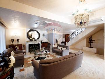 All'esterno, la villa si distingue per un ampio giardino privato di circa 2000mq, un'oasi verde che circonda l'intera proprietà. È presente anche una grande piscina, ideale per momenti di svago e relax durante le calde giornate estive, oltre a un campo da tennis privato, una caratteristica unica per gli amanti dello sport e di uno stile di vita attivo. E' disponibile unampia area destinata al parcheggio.