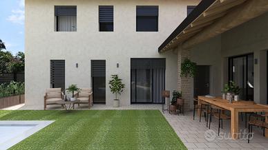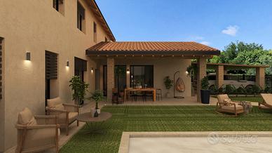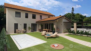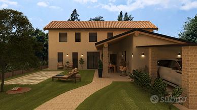 SABBIONI prenotasi villa singola in stile cascinetta di nuova realizzazione in Classe Energetica A da progetto. L'abitazione di circa 190 mq. si sviluppa su 2 livelli, al piano terra abbiamo un ingresso direttamente sull'ampio soggiorno, zona pranzo, cucina abitabile con doppia porta finestra scorrevole che si affaccia sull'ampio portico di 25 mq. e giardino privato di mq. 250 con possibilità piscina (optional), un secondo ingresso di servizio con dispensa, bagno per gli ospiti, lavanderia e locale stireria, doppio posto auto coperto di 40 mq.; al primo piano camera matrimoniale con cabina armadio e bagno privato, 2 camere e bagno. Possibilità personalizzazioni interne e ampia scelta finiture. L'immobile potrà beneficiare del bonus ristrutturazione di circa ? 96,000 in 10 anni. Prezzo ? 630.000,00, permutiamo direttamente il Vs appartamento in acconto prezzo.