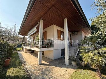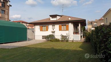 VENDO VILLA SINGOLA O INTERO LOTTO PER OPERAZIONE IMMOBILIARE Vendo villa indipendente in centro ma in zona silenziosa. Comoda con vicino scuole, negozi, mezzi pubblici, strade di grande comunicazione. Grande confort e qualità di vita. Ubicata su un terreno edificabile di oltre 900mq cat. B1 residenziale, la villa si sviluppa su un arioso piano rialzato abitativo di circa 135mq + terrazzo e su altri 135mq di seminterrato. Al piano rialzato troviamo: ingresso, balcone, sala, cucina, 2 bagni, anticamera e 2 camere, con possibilità di ricavare una terza camera. Al piano seminterrato: cantina, locale caldaia/depuratore, taverna, ufficio, laboratorio e garage. Dispone anche di ampio sottotetto al rustico isolato con Isotec con lucernai e abbaino accessibile con botola e scala a pantografo, ma con possibilità di costruire comoda scala. Climatizzazione estiva e caldaia a condensazione installata nel 2022. La casa è stata costruita negli anni 70' e poi ristrutturata nel 2000, si presenta in buone condizioni generali. Possibile ristrutturazione utilizzando il bonus del 65%. Possibilità di vendere solo la villa con porzione di giardino di circa 270mq a 435K € oppure, aggiungendo 150K €, con anche terreno edificabile di oltre 500mq dotato di passo carraio indipendente e volumetria rimanente di 900m3 (ideale per costruire villetta di due/tre appartamenti). In alternativa, acquistando l'intero lotto, per massimizzare l'investimento è possibile costruire l'intera volumetria rimanente elevando la struttura esistente, già predisposta per essere alzata, fino a 16,5mt come da PGT approvato nel 2025. Così da ottenere appartamenti per 300mq abitativi e con grandi terrazzi. I posti auto possono essere costruiti sopra terra nell'ampio spazio dietro la casa.