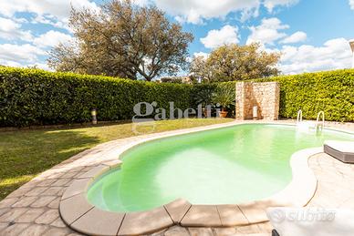 Le rifiniture di pregio e i materiali di alta qualità conferiscono alla villa un'eleganza senza tempo, con rivestimenti in pietra e ulivi secolari che creano un'atmosfera unica e suggestiva. Gli ampi spazi esterni sono caratterizzati da un curato giardino, una piscina per rinfrescarsi nelle calde giornate estive, una doccia in muratura, un angolo barbeque e un ampio parcheggio per ospitare comodamente più veicoli.