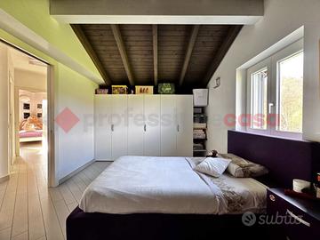 Proponiamo in vendita una splendida villa indipendente libera su quattro lati, costruita nel 2012 su un lotto di circa 1000 mq, impreziosita da piscina, ampi porticati e giardino privato. L'immobile è immerso nel verde, in una zona tranquilla e riservata, ideale per chi cerca privacy, comfort e qualità della vita. La villa si sviluppa su tre livelli. Attraverso il vialetto d'ingresso si accede all'abitazione, dove veniamo accolti da un luminoso soggiorno, una cucina con piacevole vista panoramica sul giardino e un bagno finestrato dotato di box doccia. Una scenografica scala in OKITE conduce al piano superiore, dove la zona notte è stata organizzata in modo funzionale e armonioso: troviamo un locale sottotetto attualmente utilizzato come camera da letto; un elegante bagno finestrato, molto luminoso, completo di box doccia e vasca; una seconda camera da letto e a completare il piano un'ulteriore camera, attualmente quella matrimoniale, con cabina armadio a parete e accesso diretto al terrazzo. Al piano seminterrato è presente un ampio locale versatile, ideale come sala hobby, oltre a una comoda zona lavanderia. All'esterno, la proprietà si distingue per gli spazi curati e vivibili: il giardino privato con piscina rappresenta il luogo perfetto per momenti di relax, mentre il porticato coperto consente il parcheggio di due auto. Particolare attenzione è stata dedicata all'efficienza energetica e al comfort abitativo: la villa è dotata di pannelli solari per la produzione di acqua calda, impianto fotovoltaico da 4 kW, tapparelle elettriche e si colloca in classe energetica A1, garantendo elevati standard di risparmio energetico e sostenibilità.