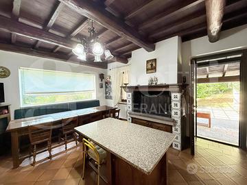 Al piano terra troviamo un ampio ambiente living con camino, a seguire una cucina ben attrezzata con zona pranzo e camino ed accesso alla splendida veranda. Completano il piano una camere da letto per ospiti , uno studio ed un bagno.