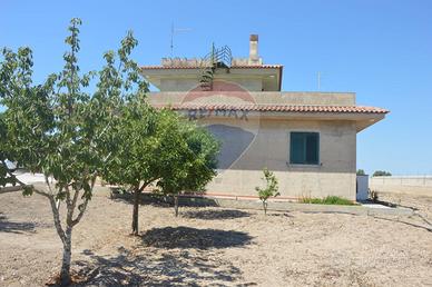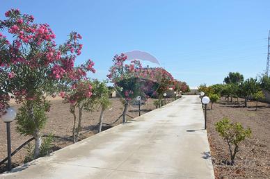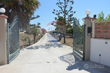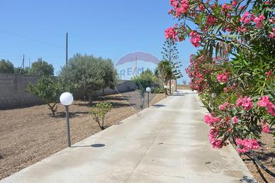 La villa è dotata di un terreno di pertinenza di circa 7.000 Mq. con pozzo-trivella e fossa imhoff. Si accede alla casa attraverso una grande cancello in ferro battuto con apertura elettrica che da accesso ad un viale pavimentato, percorribile con lauto che conduce alla zona parcheggi.