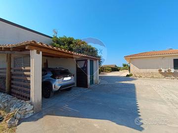 Il fronte casa è costituito da unampia veranda coperta comunicante con la zona living: adiacente alla veranda troviamo il giardino curato nei dettagli e dotato di spazi accessibili per godere dellesterno della casa ed apprezzare la splendida vista sulla campagna circostante e sulla costa meridionale della Sicilia che va da Portopalo di Capo Passero a Granelli.