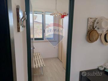 Labitazione si sviluppa su un unico livello ed è in condizioni perfette, abitabile subito. La casa misura 98 mq, 111 mq compresa la superficie commerciale delle aree scoperte, ed è composta da tre camere da letto, due bagni, una deliziosa zona living con cucina e un comodo ripostiglio. Completano limmobile una comoda veranda attrezzata, un grande terrazzo con splendida vista mare, una doccia esterna, un posto macchina coperto e un piccolo deposito attrezzi.