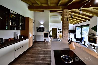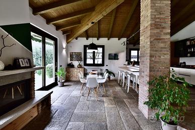 Esternamente, oltre al giardino privato dotato di impianto di irrigazione, sono annessi boxes auto, porticati ed ampia terrazza solare con vista sul Parco.