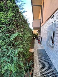 Tramite accesso privato, sia pedonale che carrabile, si accede alla proprietà privata che vanta un'area esterna a giardino per complessivi 400 mq. circa che si estendono sui 4 lati del fabbricato.