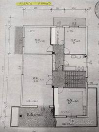Tramite scala interna accediamo al piano primo ove si sviluppa la zona giorno/notte su unico livello abitativo, così distribuita: doppio soggiorno con doppio rapporto finestrato e accesso diretto al terrazzo al piano, ampia cucina abitabile, anch'essa munita di accesso al balcone lato est, bagno finestrato, n. 2 comode camere da letto, oltre locale ripostiglio finestrato trasformabile in ulteriore servizio igienico per complessivi 122 mq. circa, oltre 20 mq. circa di terrazzo/balcone.