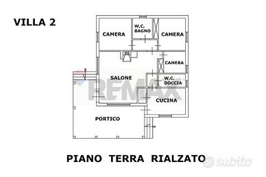 Su una elevazione fuori terra con una abitazione di paino terra rialzato di mq. 110 costituita da salone, tre camere di cui due con armadi a muro, w.c. con vasca, w.c. con doccia, cucina abitabile, vano dispensa e portico su due lati di mq. 32.