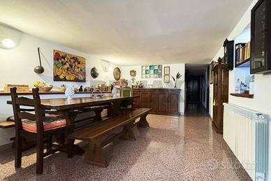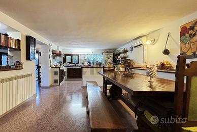 Abitazione di piano primo sotto strada di mq. 124 costituita da salotto, ampio soggiorno con annesso angolo cottura diviso da comoda penisola, due camere di cui una con cabina armadio, w.c. con vasca, w.c. con doccia e armadio a muro, e pertinenza esterna adibita a spiazzo con piccola tettoia di mq. 130.