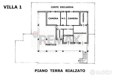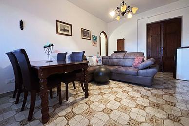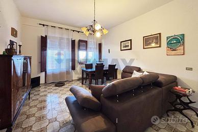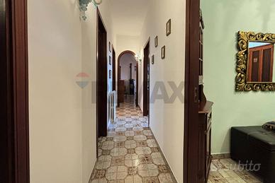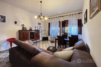 Abitazione di piano terra rialzato di mq. 107 costituita da due comode camere da letto, un soggiorno, ingresso, disimpegno, wc, con vasca, cucina semi abitabile, ripostiglio, veranda e ampio portico su due lati di mq. 82 e pertinenza esclusiva di mq. 75.
