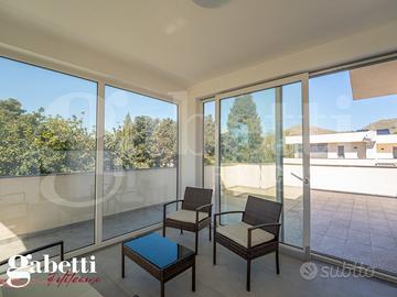 A Palermo, immersa nel cuore di una delle zone più prestigiose e servite di Mondello, sorge una straordinaria villa indipendente di nuovissima costruzione, completata nel 2024, che incanta per la sua architettura d'avanguardia e l'altissima efficienza energetica. Situata in un esclusivo residence di moderne ville, questa proprietà vanta 11 locali, di cui 6 camere da letto,tre grandi cucine soggiorno ed un' ulteriore cucina semi-abitabile, 8 bagni distribuiti su una superficie interna di 350 mq su tre livelli, con un lotto complessivo di 1.300 mq. La villa si distingue per la sua classe energetica A4 (Full Electric) e per i 21 pannelli solari con sistema di accumulo da 15 kW, garantendo massimo risparmio e indipendenza energetica. Inoltre, dispone di una riserva idrica di 14.000 litri totali grazie a due cisterne da 6.000 litri ciascuna ed ulteriori due cisterne da 1.000 litri. L'esclusivo giardino di 950 mq di pertinenza assicura privacy e bellezza naturale, mentre l'affaccio libero sul Parco della Favorita e su Monte Pellegrino regala una vista esclusiva. La distribuzione interna, attualmente divisa in 3 unità indipendenti, offre la possibilità di riunificarle in una sola dimora prestigiosa o di realizzare due unità bifamiliari speculari. Ogni unità è curata nei minimi dettagli e offre spazi luminosi e confortevoli, con ampie vetrate che permettono di godere della luce naturale e della vista panoramica. Tutti i bagni sono completi di box doccia per garantire il massimo comfort. Tra i punti di forza di questa villa, vi è l'autorizzazione paesaggistica già ottenuta per la realizzazione di una piscina 10m x 4m, che arricchirebbe ulteriormente l'area outdoor. Inoltre, c'è la possibilità di acquistare l'arredamento e il corredo completo e pari al nuovo , per chi desidera entrare subito a vivere in questa lussuosa dimora. Questa villa indipendente rappresenta un'opportunità unica per chi cerca una residenza di prestigio a Mondello, con tutti i comfort e