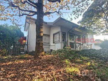 La villa disposta su UNICO LIVELLO presenta, ingresso in ampio e luminoso soggiorno con accesso a giardino, locale tinello e cucinotto, tre camere da letto per accogliere tutta la famiglia e doppi servizi finestrati. Piano seminterrato adibito a taverna con accesso indipendente da giardino e accesso interno casa, camino e locale lavanderia/caldaia