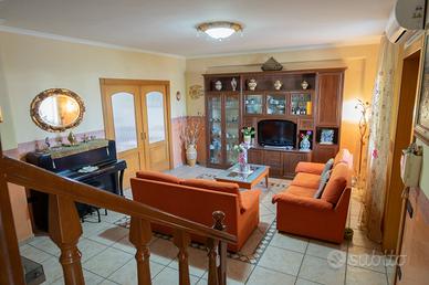 Un percorso pedonale accede all'ingresso principale, di Via Vittorio Emanuele, circondato da un piccolo e grazioso giardinetto, dove con pochi gradini raggiungiamo il portone, il quale ci permette l'accesso in un ampio salone, servito su un piano rialzato, in modeste condizioni, fornito di finestra ed una porta scorrevole che ci fa accedere alla cucina abitabile, con camino dove potrai riscaldarti in inverno, e se ti piace la cucina alla brace potresti anche usufruire di ciò per cucinare; inoltre presenta una balconata luminosa , li' dove vediamo il secondo ingresso sul retro, scendendo i gradini notiamo l'ampio cortile disteso, in gran parte pavimentato , mentre invece il resto gode di tutto lo spazio che hai sempre desiderato. Adatto soprattutto per chi ha animali domestici, questa villetta sarebbe ideale, il tuo amico a quattro zampe sarà felice di correre e giocare all'aria aperta in uno spazio tutto suo. Un' area che potrai adibire come solarium , con possibilità di montare una piscina e goderti cosi i mesi