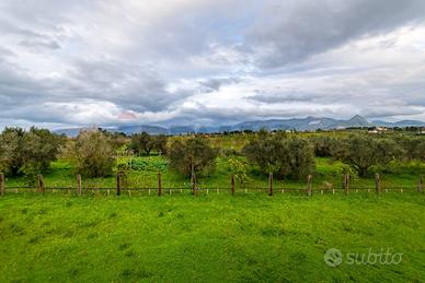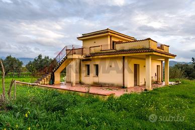 Il suo stato di conservazione richiede interventi di ristrutturazione ma offre ampi spazi e la possibilità di creare un ambiente personalizzato e confortevole. La villa è immersa nel verde di un terreno recintato che garantisce privacy e tranquillità con la presenza di alcuni alberi di agrumi.