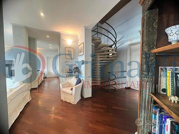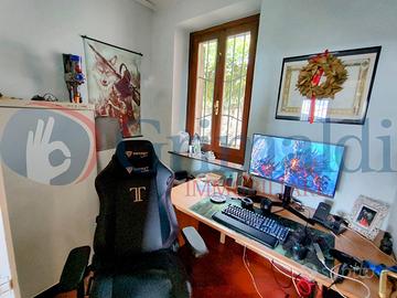 Piano superiore: collegato da una grande scala a chiocciola, si apre su una zona open space da utilizzare come studio, con uscita su un terrazzino ricavato sui tetti, due camere da letto mansardate, un bagno e un ampio sottotetto da usare come soffitta o spazio di deposito.