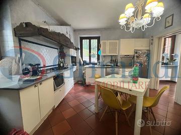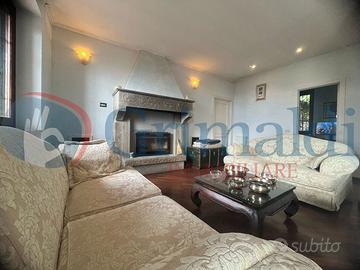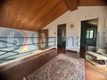 Piano terra: ingresso principale su un luminoso e grande salone con camino e sala da pranzo, cucina separata abitabile, studiolo, bagno di servizio e due camere da letto, tra cui una master room con cabina armadio e grande bagno en-suite. Da qui si accede ad un bellissimo terrazzo rialzato, perfetto per godere della vista e connesso al giardino, ideale per momenti di relax e convivialità.