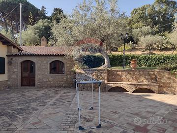 Gli spazi sono distribuiti in 11 locali, tra cui 4 camere da letto due saloni doppi, una cucina soggiorno, 3 bagni, portico, poco distante dalla villa una casetta rurale di 40 mq. con pannelli fotovoltaici composta da due camere adatta per deposito e cantina, terreno circostante alla villa in parte con prato inglese in parte con piante di ulivo e vari alberi di frutta varia.