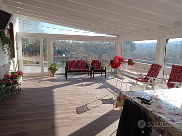 Inoltre, è dotata di un terrazzo verandato di circa 80 mq. da cui si affaccia su ampio panorama e di un giardino privato con piscina di circa 40 mq. dove è possibile godere di momenti di relax e di convivialità all'aria aperta.