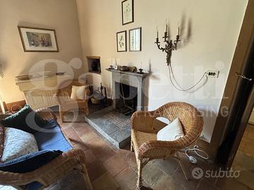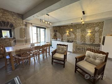 - al P.T. ingresso su ampio soggiorno living in pietra viva, con cucina a vista attrezzata che da affaccio sull'ANTICA AIA; un tempo un'antica mangiatoia che conserva ancora oggi tutta la sua storicità nei più minuziosi dettagli, 1 camera da letto con antiche travi a vista in legno e 2 bagni.