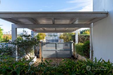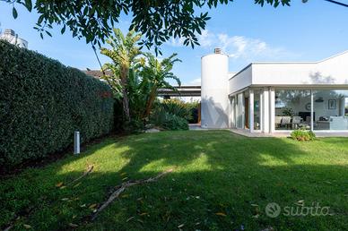 La villa si sviluppa interamente su un unico piano ed è circondata da un ampio giardino privato che ne valorizza il fascino e la vivibilità. Lo spazio esterno, sapientemente progettato, è impreziosito da un prato allinglese con impianto di irrigazione e illuminazione, oltre a essenze ornamentali e alberi che creano unatmosfera rilassante. Il grande patio e i due pergolati offrono zone ombreggiate ideali per vivere lesterno in ogni momento della giornata, con la possibilità di realizzare una piscina.