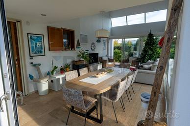 Gli ambienti interni si distinguono per uno stile contemporaneo ed equilibrato, con finiture di qualità e tonalità neutre che donano luminosità e armonia agli spazi. Gli infissi ad alte prestazioni garantiscono comfort abitativo ed efficienza energetica. Larredo è curato e funzionale, rendendo la casa immediatamente pronta da vivere sia destate sia dinverno.