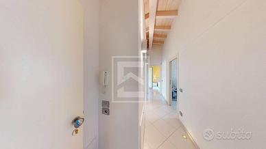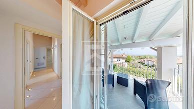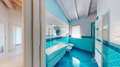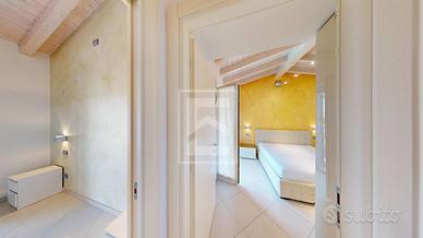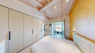 Attraverso una scenografica scala saliamo al piano primo dove insistono una master room con bagno privato, vasca idromassaggio ed acceso ad una grande loggia coperta che regala una vista lago; una camera doppia con acceso ad un secondo terrazzo anch'esso con splendida vista lago; una camera singola e un bagno completo di doccia.