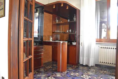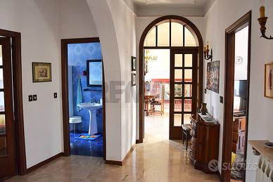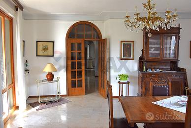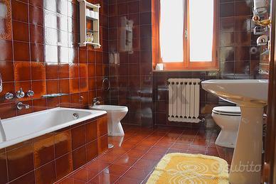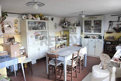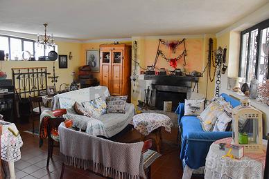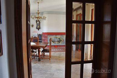 Al piano sottostante, raggiungibile sia da davanti che sul retro : caratteristica taverna con il secondo camino della casa, una cucina antica spaziosa, il terzo bagno. Garage doppio e cantina. Locale caldaia e sottoscala.