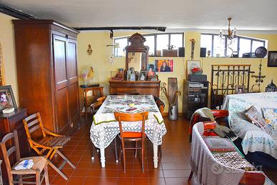 La zona giorno è composta da cucinotto, sala da pranzo con accesso alla terrazza; il grande soggiorno luminoso con camino, una parete è totalmente a portafinestra per la terrazza vivibile. Il primo bagno finestrato con accesso al terrazzo sul retro, vista totalmente sul verde e panoramica; qui è predisposta volendo la doccia. Zona studio finestrata.