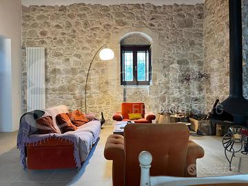 Nella meravigliosa campagna Ragusana, a meno di 5 km dalla splendida Ragusa Ibla, sulle sponde della riserva naturale del fiume Irminio e a pochi passi dal lago Santa Rosalia, Vi proponiamo questo straordinario casale totalmente ristrutturato. Il casale di poco meno di 150 mq è stato oggetto di una sapiente attività di restauro che ha saputo coniugare l'antichità dei luoghi e dei materiali, come la pietra bianca tipica del territorio, ai più moderni materiali come l'acciaio. Lo spazio è attualmente distribuito su un ampia zona giorno con cucina e ampia lavanderia in parte soppalcata per creare una zona letto. L'elemento centrale è il camino sospeso della linea Focus, iconico oggetto di design. L'ingresso della casa disimpegna la zona giorno dalla zona servizi anch'essa soppalcata per far spazio a un altro letto, e altre due camere di cui una con bagno privato il cui elemento peculiare è l'antico pavimento in asfalto ripreso magistralmente dal restauratore. L'intera proprietà è immersa in una corte di quasi 1300 mq sul quale insiste un altro piccolo rudere anch'esso con le potenzialità per essere ripreso e creare una depandance per la struttura principale
